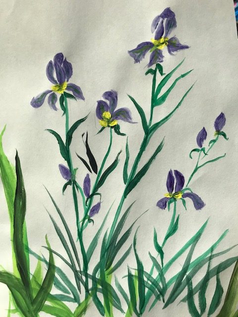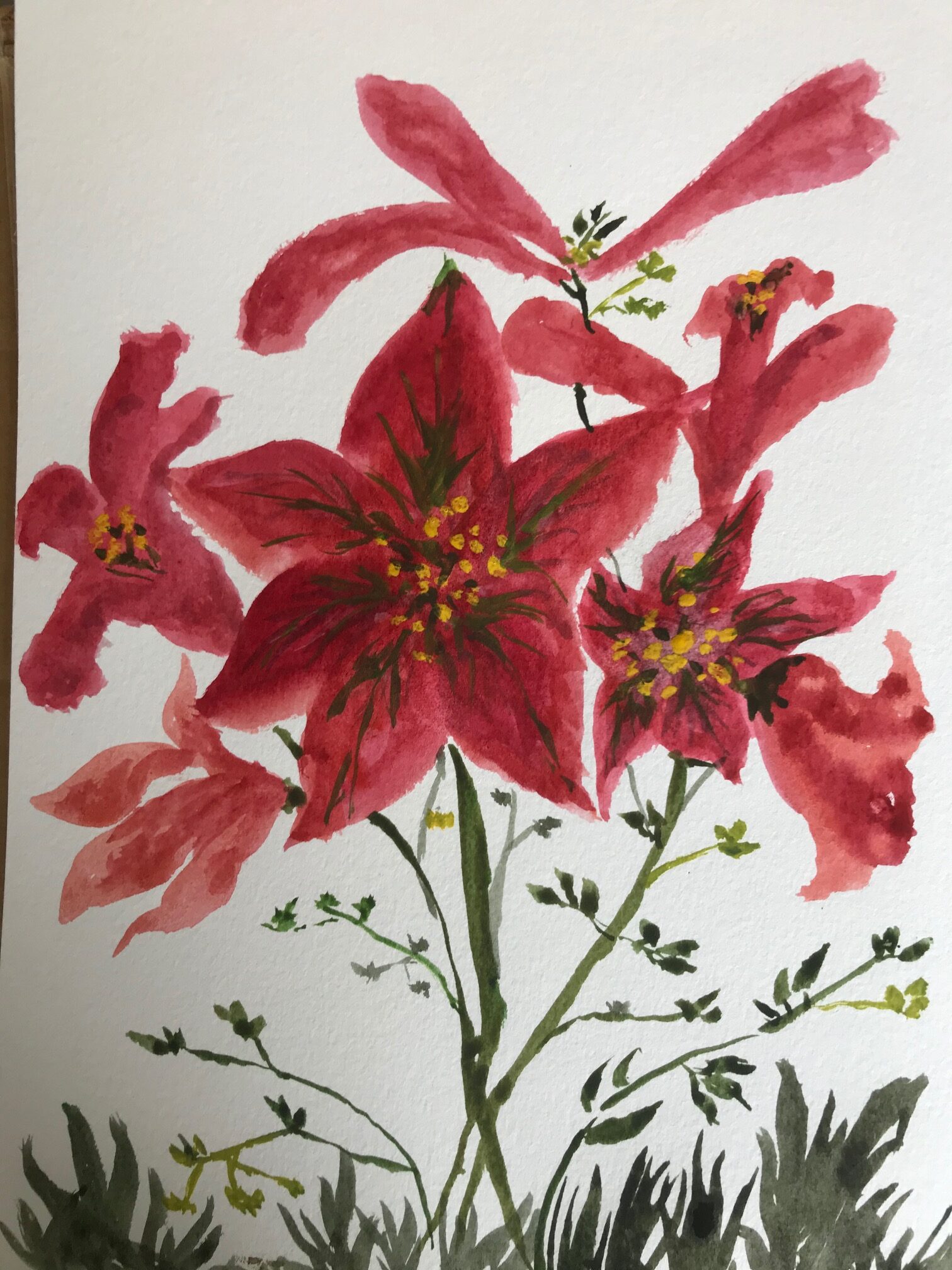 When I worked in oils and printmaking I used a lot of color. You can use color in watercolor too, it’s just not as vibrant as oils, so now we’re starting to play with that by focusing on flowers; I use my the exercises that my teacher gives me as a starting point and run with it on my own, because that’s what you do as an artist.