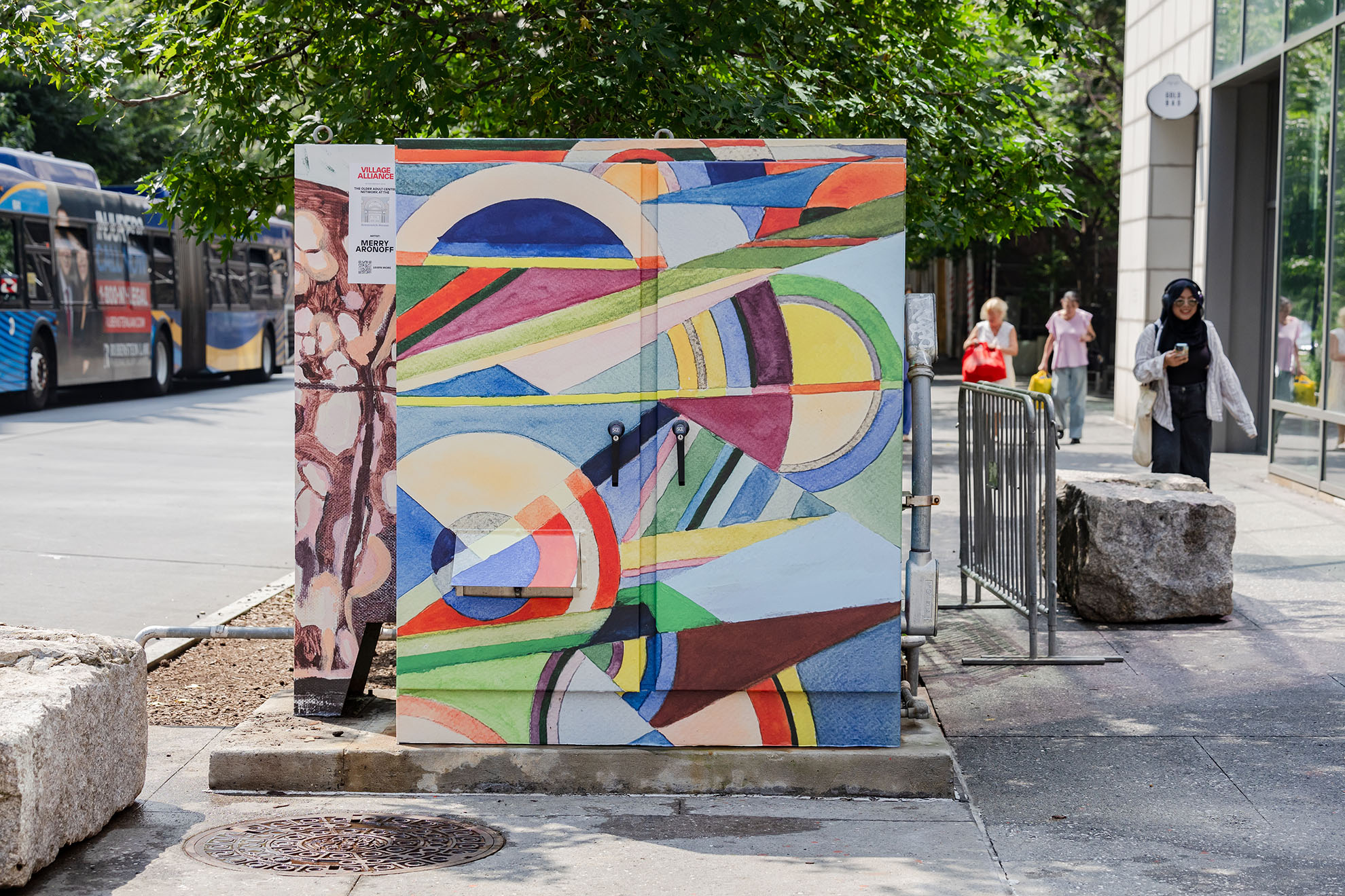 In collaboration with the Village Alliance, this public art installation project brings the talents of local older adult artists into one of the city’s most visible public spaces. Their artwork, some of which nods to iconic NYC themes, reminds all who pass by that beauty and innovation aren’t limited by age—they flourish with it.