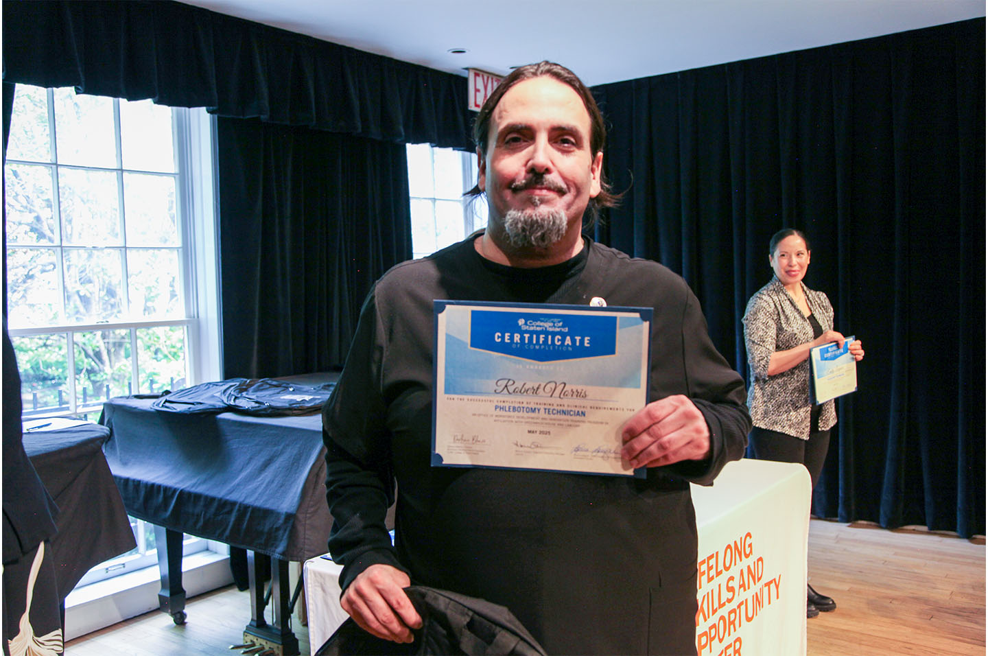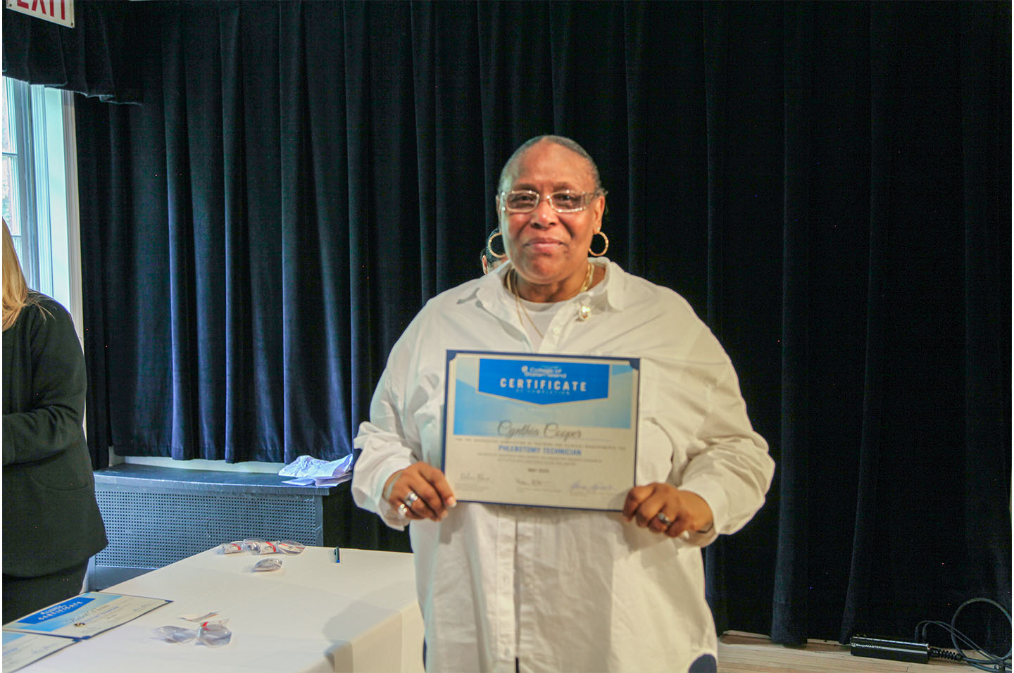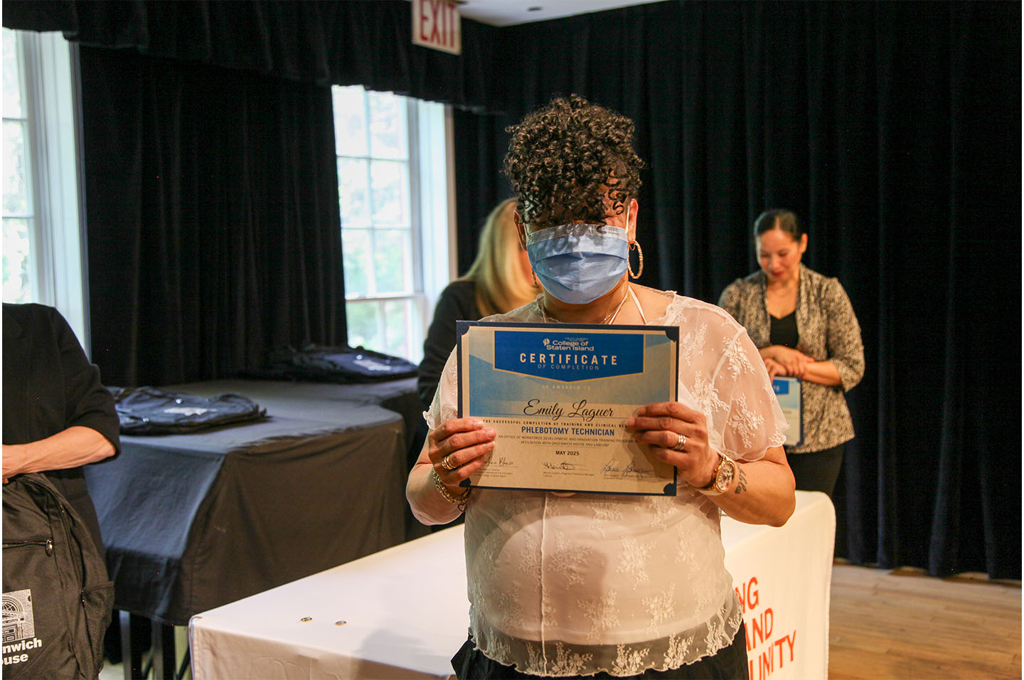On May 30, 2025, Greenwich House celebrated a powerful milestone with the graduation and pinning ceremony for the inaugural cohort of its Phlebotomy Certification Program. The event honored the first of three groups to complete the Lifelong Skills and Opportunity Center’s intensive training, marking a proud moment for the students, their families, and the broader community that supported their journey.