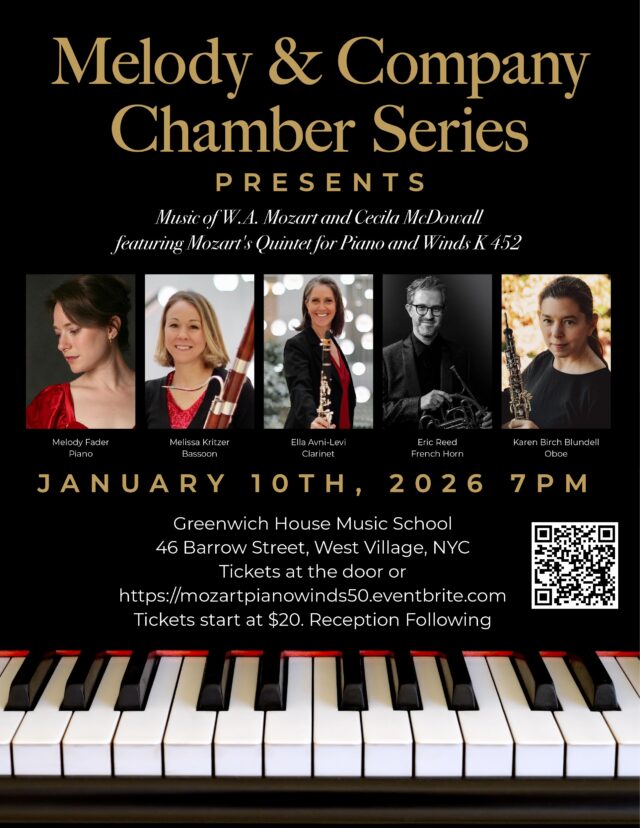 Please join Melody and Company Chamber Series for an evening of music for piano anf winds in the West Village, NYC!