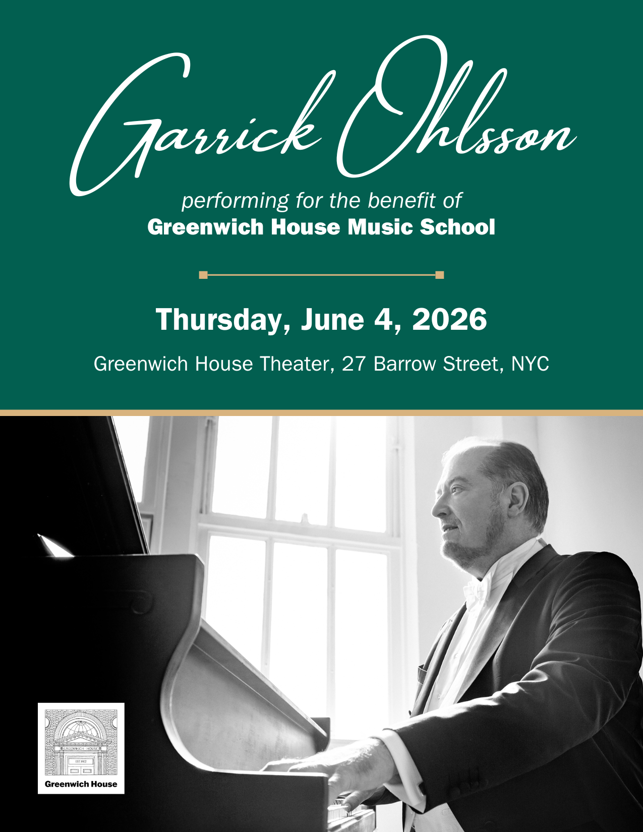 Jun 4 GHMS Benefit Concert with Garrick Ohlsson – Tickets Now on Sale! 7:00 pm Greenwich House Theater 27 Barrow Street, New York Event Details Get Directions