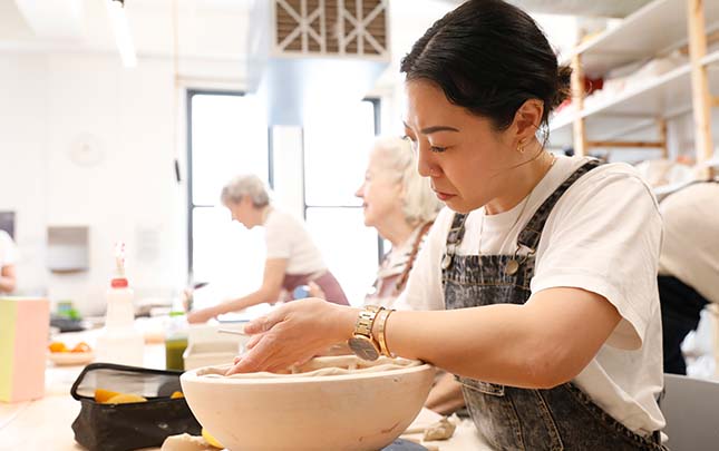 Learn pinching, rolling, and slab-building to create a clay project — no experience required. FREE.