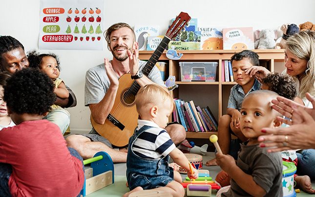 Family-style sessions that bring parents, caregivers, and children together to sing, move, and make music as a community.