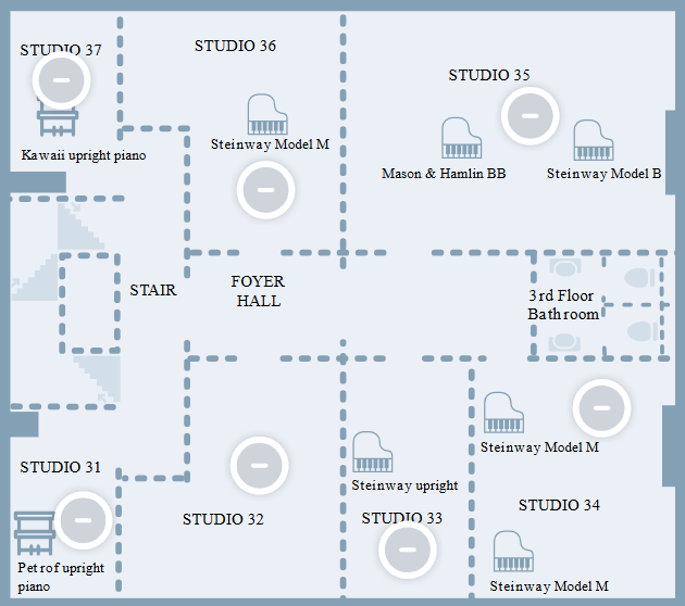 - If a piano or piece of equipment needs our attention, please let us know at the reception desk on the first floor.