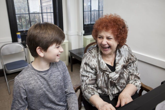 I would sometimes watch her during Greenwich House recitals, observing her students perform. She would sit forward on her chair, leaning on her cane, and the look on her face was always one of complete and utter pride. One of her students remarked that she was one of the best people she had known – gifted, brilliant, kind, and caring. Another student called her a “life force.” The photo above is one of her that we used a year or two ago in our brochure. In it, she’s teaching one of her long time students, Ben Rafal, and you can see from the photo the very essence of her spirit. She was such a joyful woman and loved teaching. We will miss her dearly.