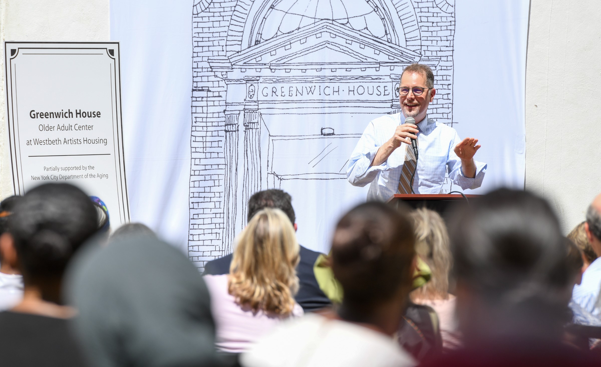 Greenwich House officially commemorated the opening of our older adult center at Westbeth Artists Housing with a ceremony on June 28, 2022. The new older adult center, at 155 Bank Street in the West Village, links Greenwich House programming with one of the most unique artist residency sites in the country. The Westbeth site will provide meals and social programming and will focus on social services, including much sought-after assistance with benefits, entitlements, healthcare, nursing, and much more. It will be open Tuesday through Saturday and will be one of the few older adult sites in the City offering meals and services on Saturdays.