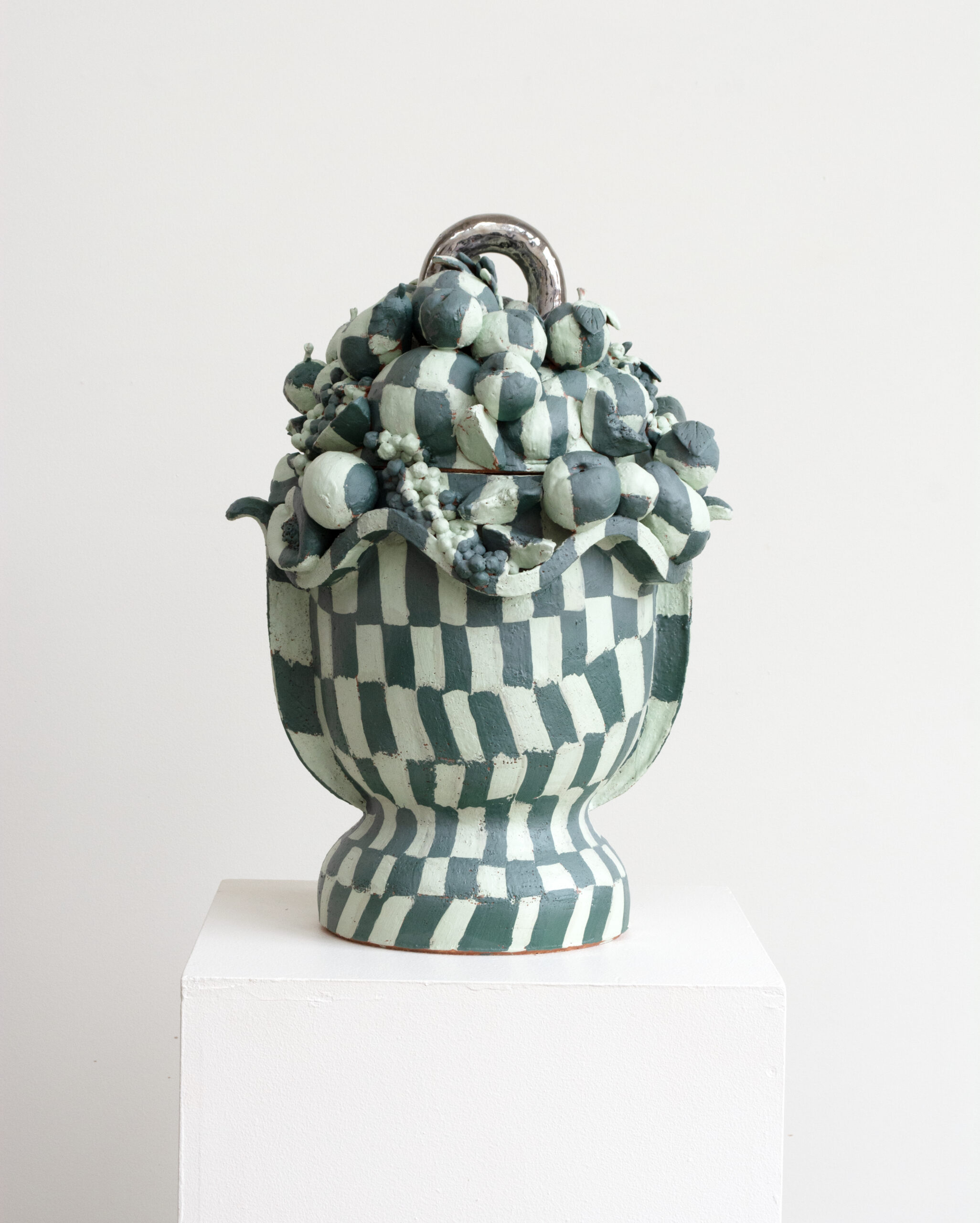 Maura Wright, “Juicy Fruit Jar,” earthenware, slip, glaze, luster, 24” x 16” x 15”, 2023. Photo: courtesy of the artist.
