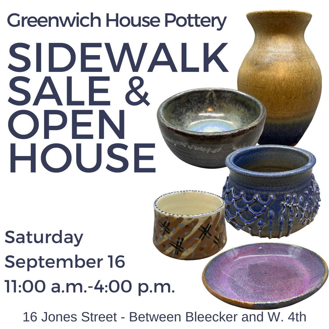 Greenwich House Pottery will host the annual Open House and Sidewalk Sale with a sidewalk filled with pots, pots, pots! Hundreds of pieces of handmade pottery will be for sale starting at just $5. All works were generously donated by members of the Greenwich House Pottery community and proceeds directly benefit GHP’s operations. This is sure to be our biggest sale of the year!