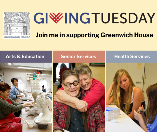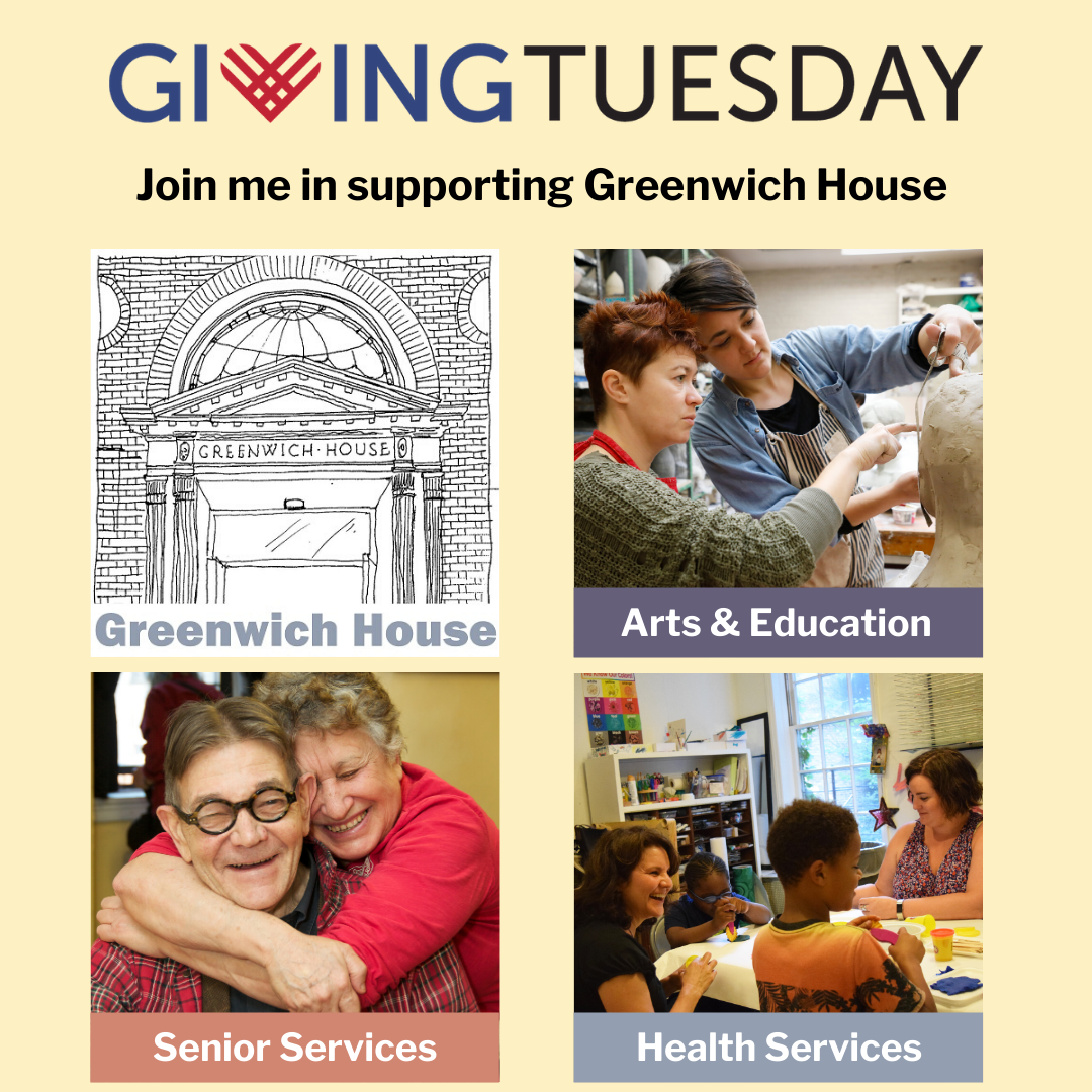 Giving Tuesday is driven by community. Share why Greenwich House is important to you and encourage your friends and family to join you in your support for our mission. Here are some images you can post on social media, and you can use the hashtag #givingtuesday to spread the word even further! Need a shortened link for this page? Try: https://bit.ly/2CYLQJn